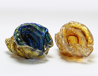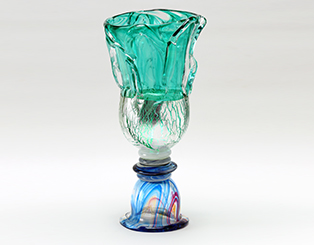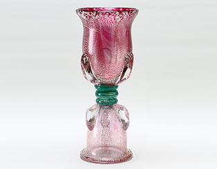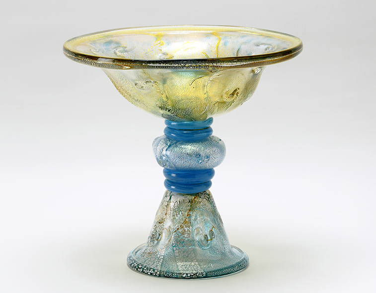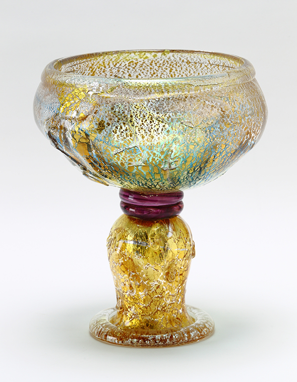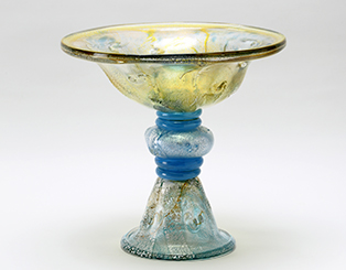 近代硝子工芸創世期の硝子工芸作家で、大胆で優美な色使いと、高い制作技術で銀箔を熱によって窯変させて金色に発色させる「窯稀彩(ようきさい)」と呼ばれる技法を生み出し、国内外で活躍しました。