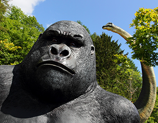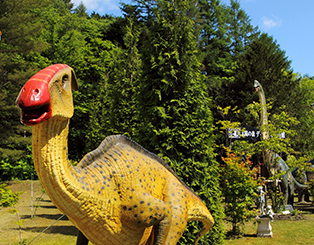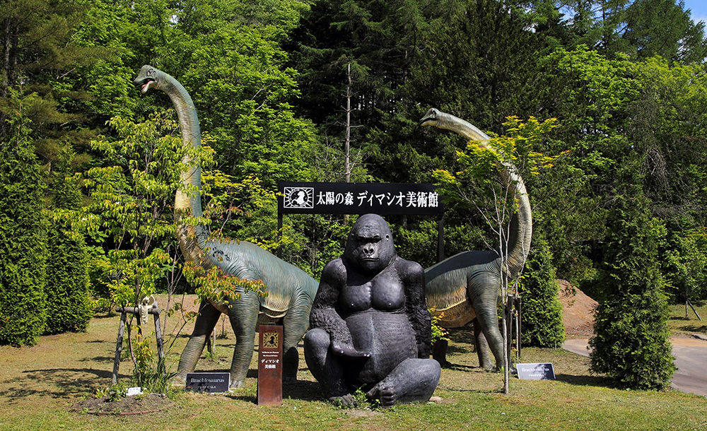 お子様に大人気!美術館の外には7mにも及ぶ大きな恐竜が皆さんをお待ちしています。