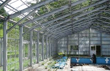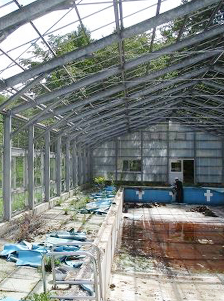 太陽の森ディマシオ美術館は、もともと廃校となった旧・太陽小学校が生まれ変わったものですが、そのプール設備についても残った鉄骨を使い周囲をガラス張りにすることで、自然採光に映えるガラス作品が展示できると考えられ、オープンに至りました。