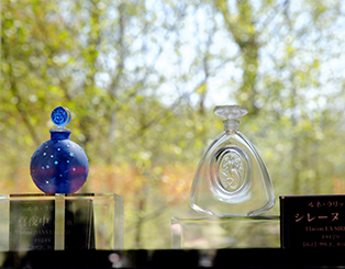 ガラス芸術の巨匠ルネ・ラリックの作品と、壹谷(いちや)旭の作品が展示されています。