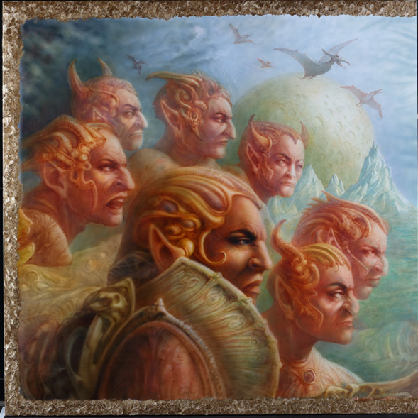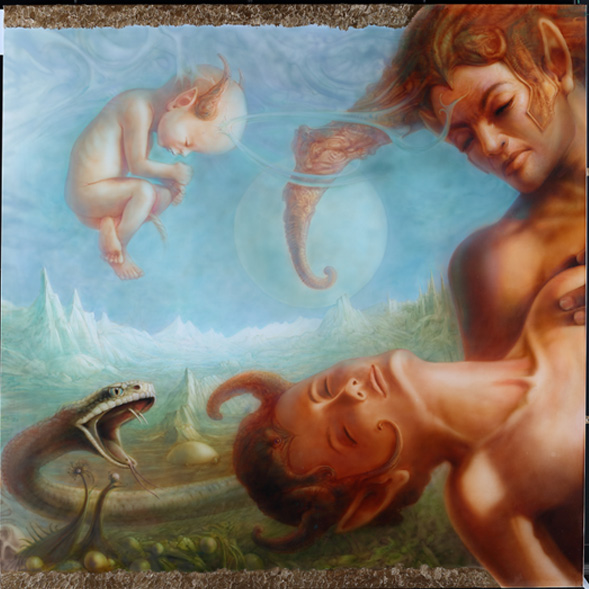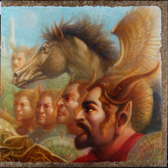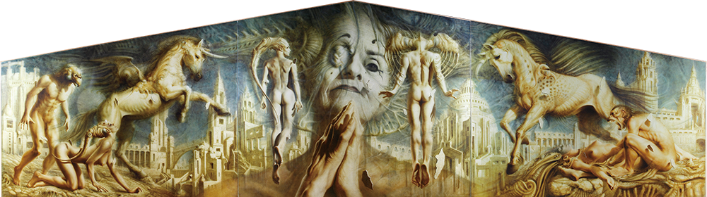 色彩が幻影に近く、人物を描くとその人物の周りの色がとけ込んでくる。そのような色彩の使い方によって空想か真実かを忘れさせてしまう。